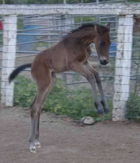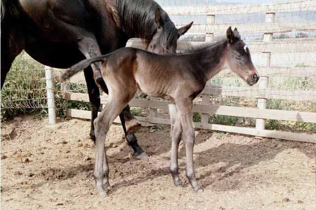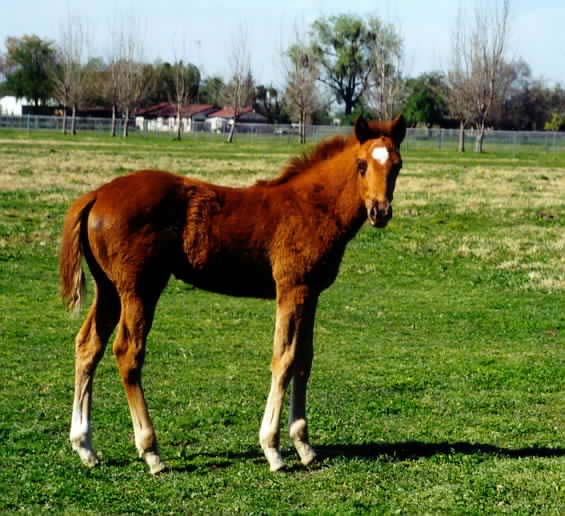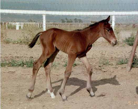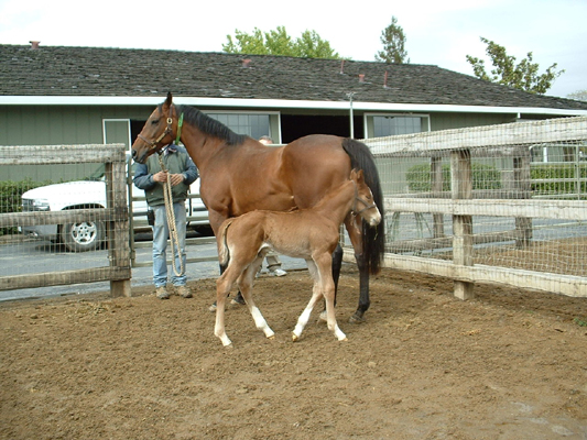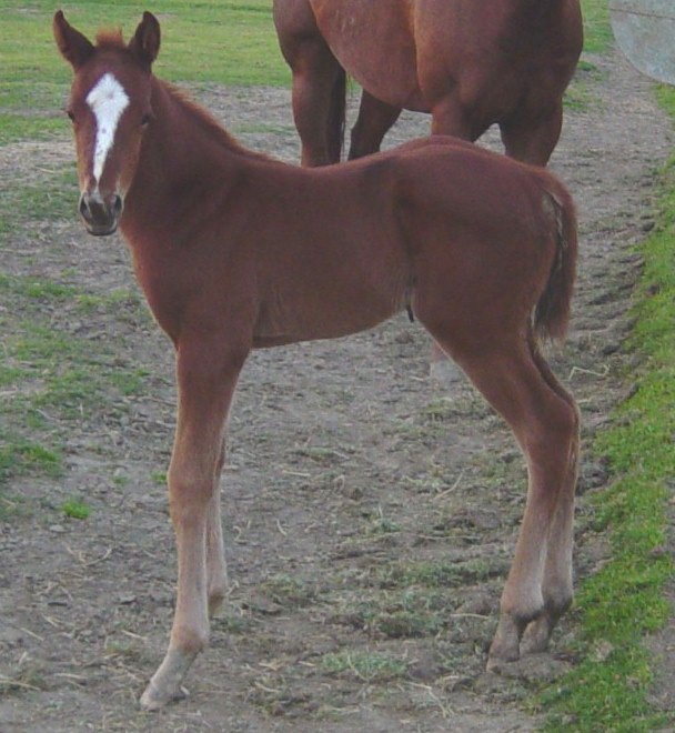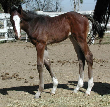 Sire: Benchmark Dam: Timely Kitten by Afleet Foaling Date: Monday March 17, 2003 Photo taken March 19, 2003 Breeder: Ivo Reindal Born at Ballena Vista Farm