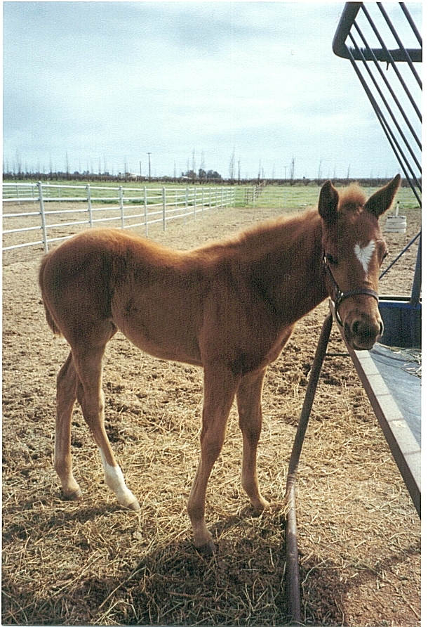 Sire: Cee's Tizzy Dam: Desert Violet--Sire: Desert Wine Foaled: 1-18-03 Picture taken: 1-20-03 Breeder: hi