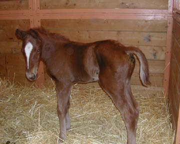 Foaling Date: 5/14/03, 13 hour old filly