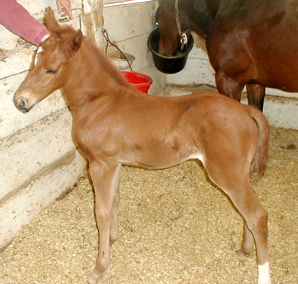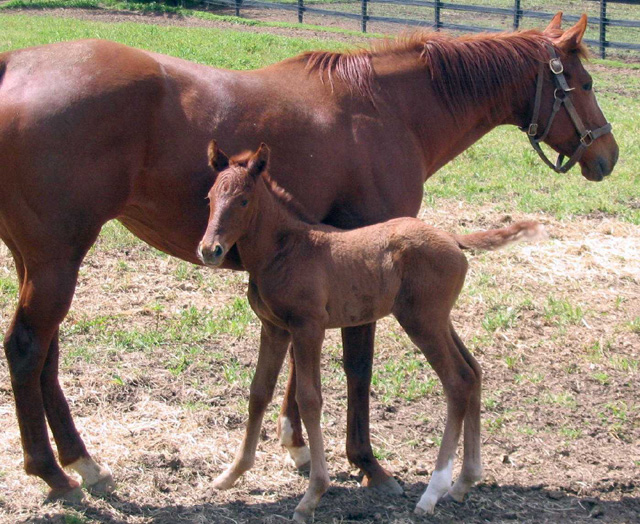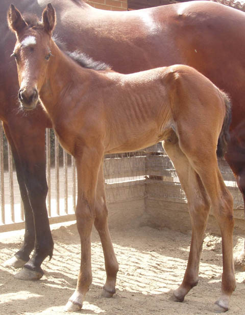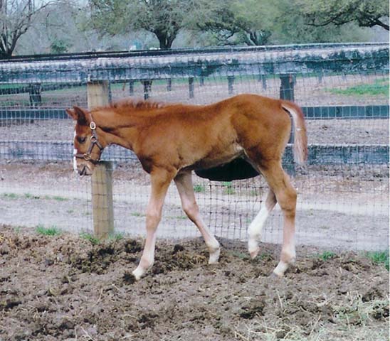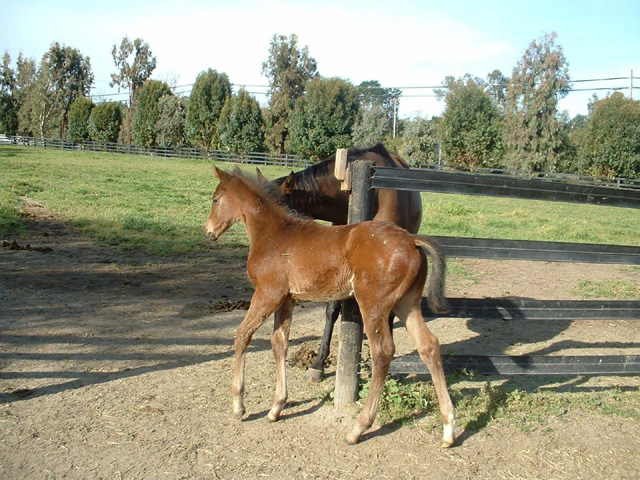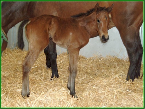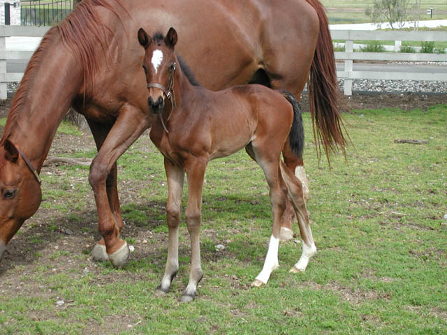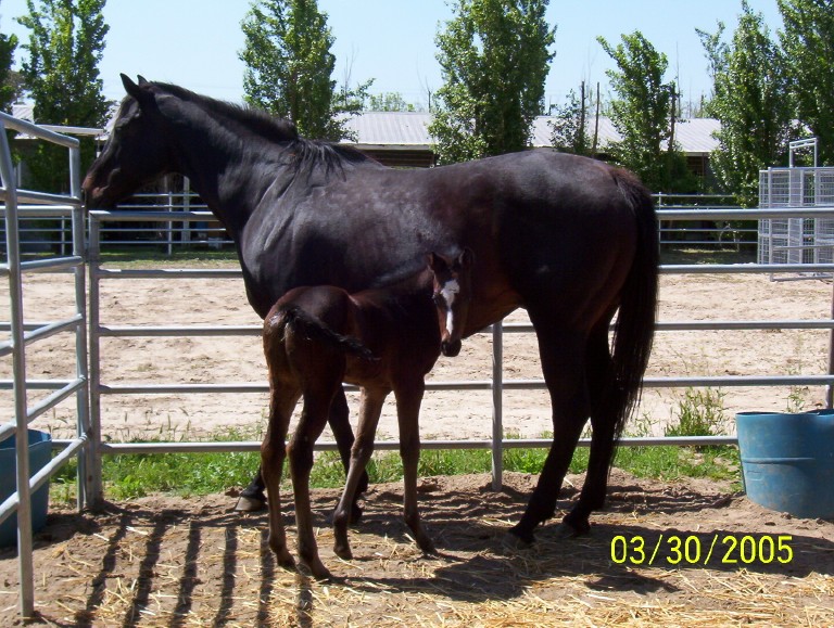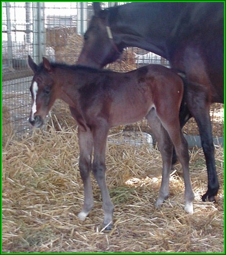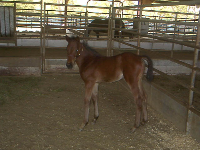 First foal by Decarchy. Colt out of Kitty Galore born 1/3/05 (pictured at