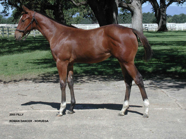Filly by Roman Dancer, out of the Dance in Time mare Noruega, was foaled