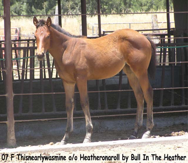 Filly by Thisnearlywasmine, out of the Bull In the Heather mare Heather On